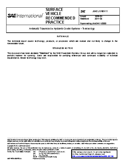 Automatic Transmission Hydraulic Control Systems - Terminology (Stabilized: Jun 2011)