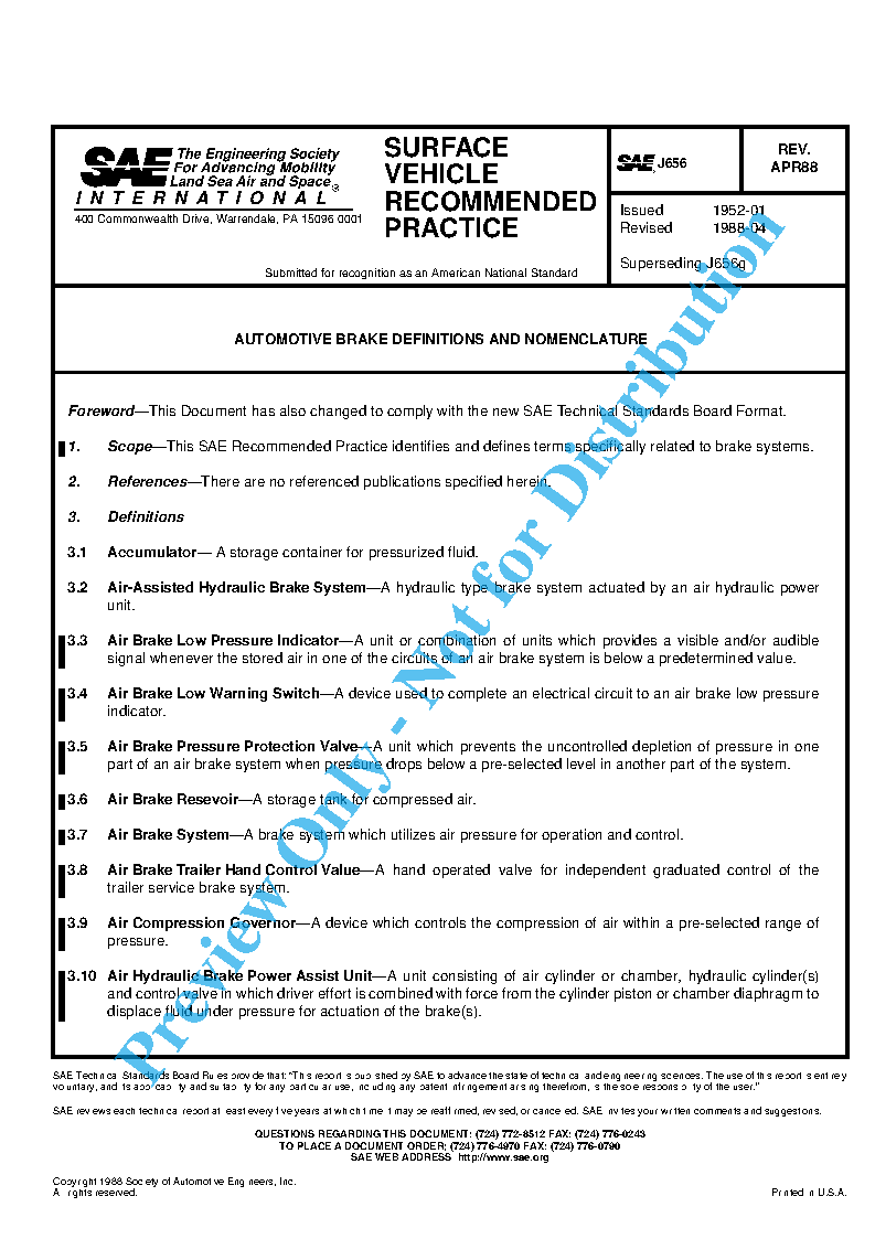 This SAE Recommended Practice identifies and defines terms specifically related to brake systems.