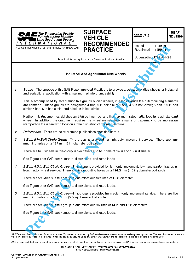 The purpose of this SAE Recommended Practice is to provide a selection of disc wheels for industrial and agricultural application with a maximum of interchangeability.