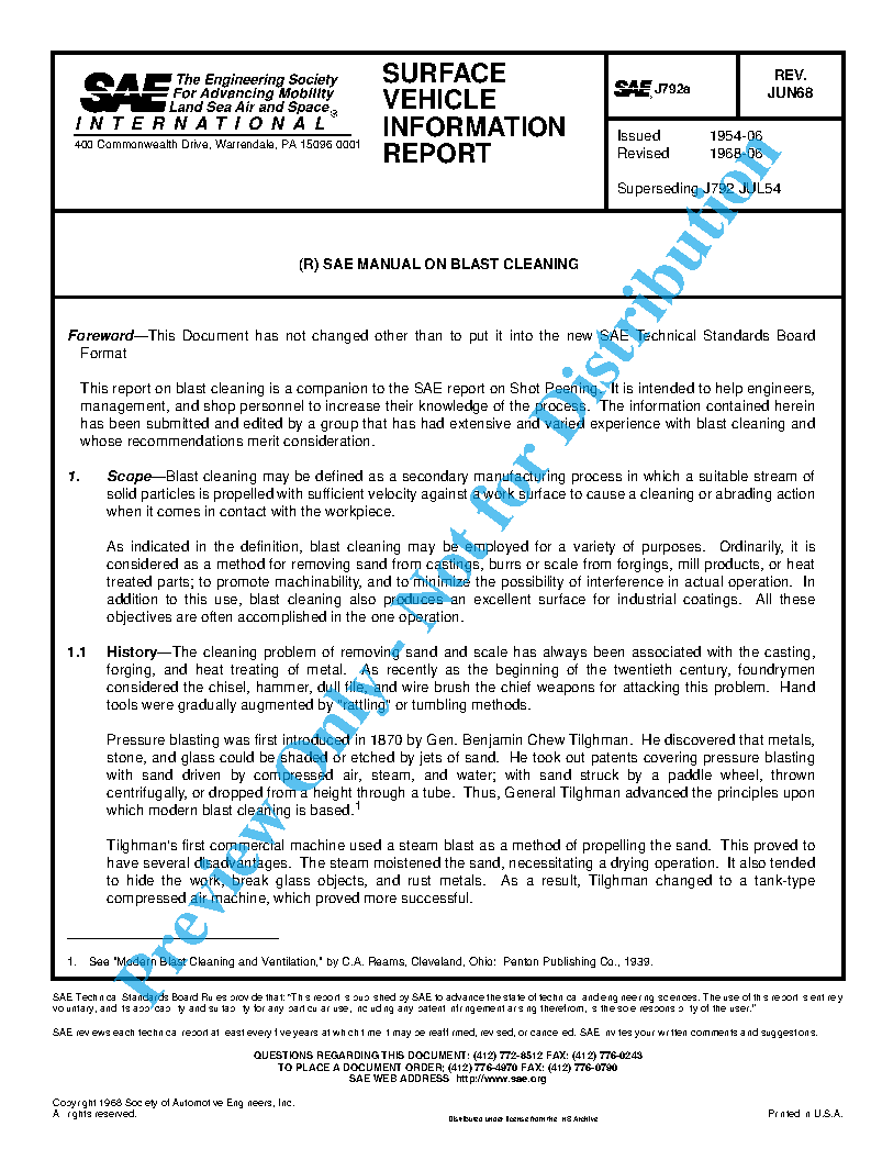 As indicated in the definition, blast cleaning may be employed for a variety of purposes. Ordinarily, it is considered as a method for removing sand from castings, burrs or scale from forgings, mill products, or heat treated parts; to promote machinability, and to minimize the possibility of interference in actual operation. In addition to this use, blast cleaning also produces an excellent surface for industrial coatings. All these objectives are often accomplished in the one operation.