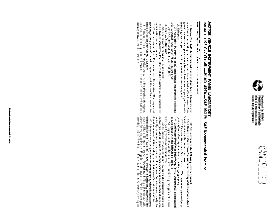 This SAE Recommended Practice describes a laboratory test procedure for evaluating the head impact characteristics of such areas of an automotive instrument panel as may be required to meet impact performance established for the protection of lap-belted front seat occupants.