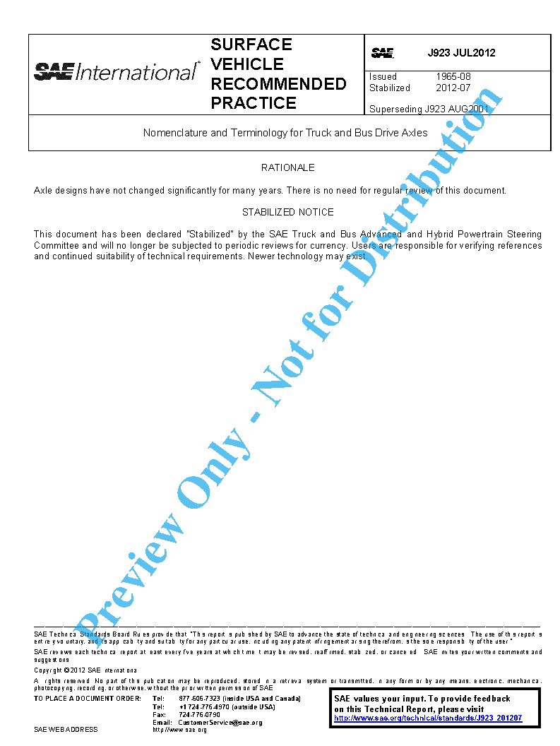 Nomenclature and Terminology for Truck and Bus Drive Axles (Stabilized: Jul 2012)