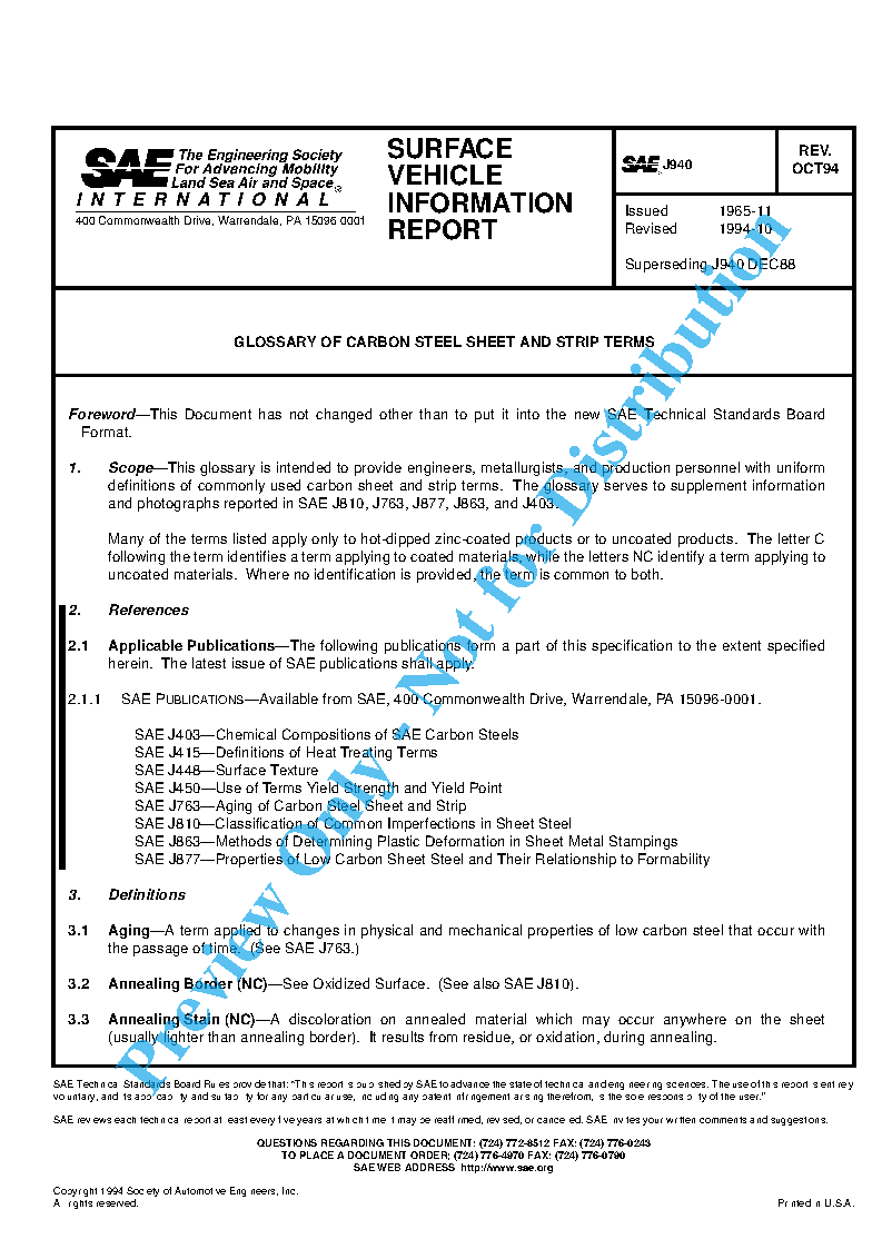 This glossary is intended to provide engineers, metallurgists, and production personnel with uniform definitions of commonly used carbon sheet and strip terms. The glossary serves to supplement information and photographs reported in SAE J810, J763, J877, J863, and J403.