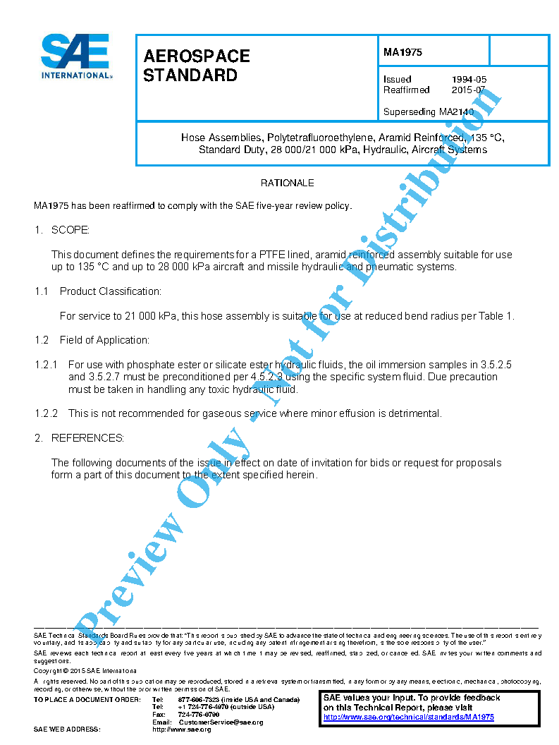 This document defines the requirements for a PTFE lined, aramid reinforced assembly suitable for use up to 135 °C and up to 28 000 kPa aircraft and missile hydraulic and pneumatic systems.