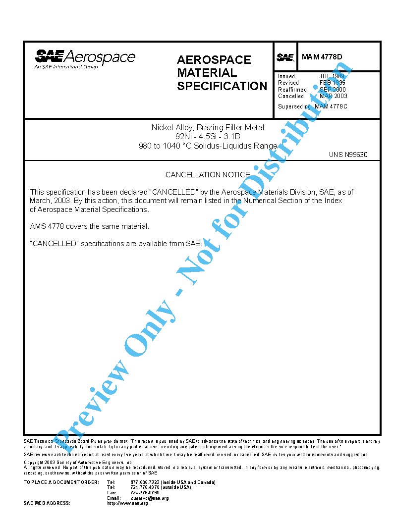 This specification covers a nickel alloy in the form of wire, rod, strip, foil, and powder and a viscous mixture (paste) of the powder in a suitable binder and procured in metric units.