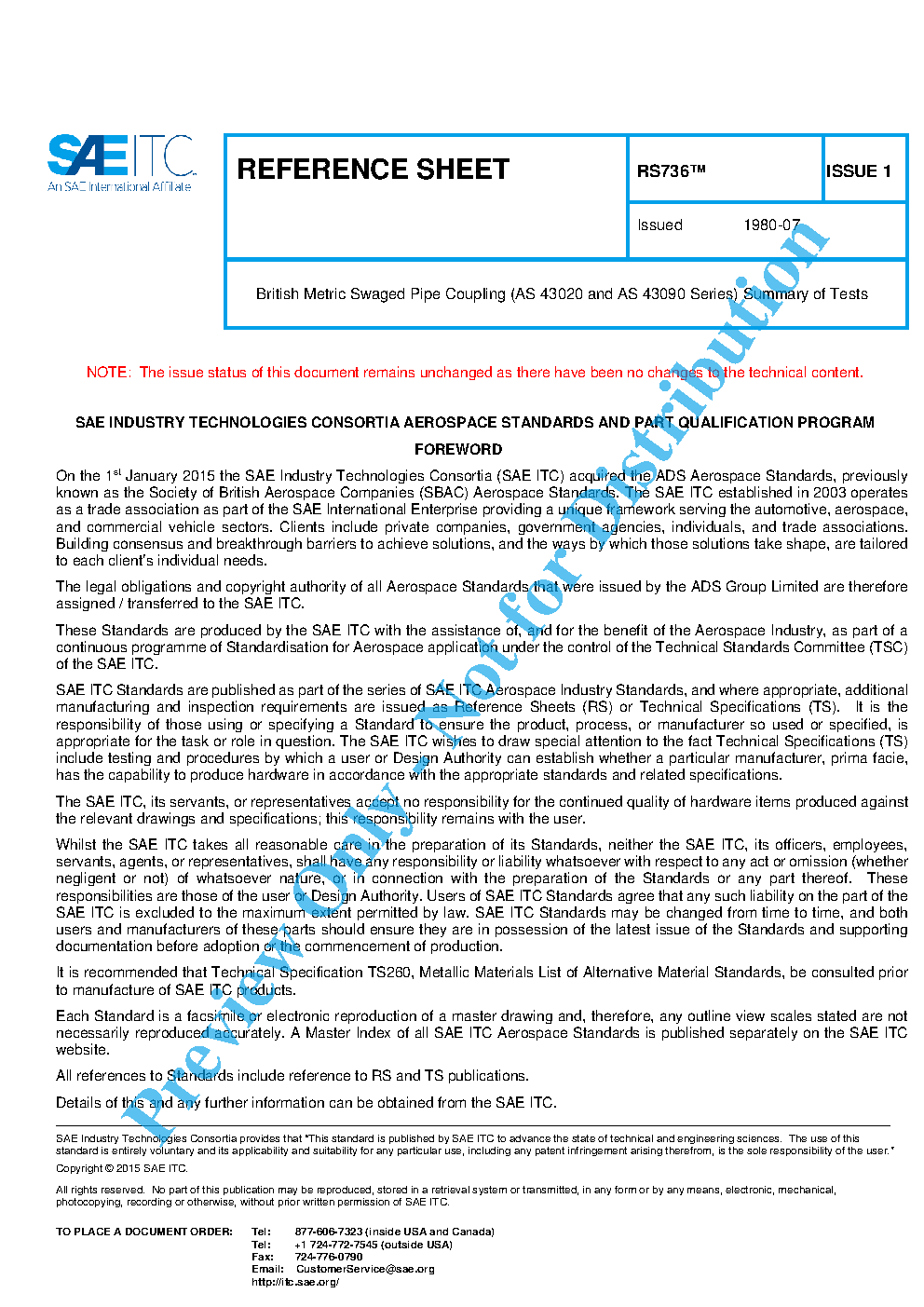 RS736 British Metric Swaged Pipe Coupling (AS 43020 and AS 43090 Series) Summary of Tests
