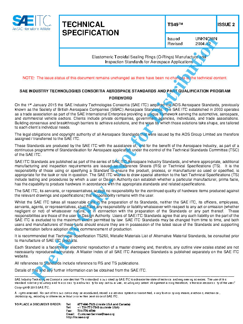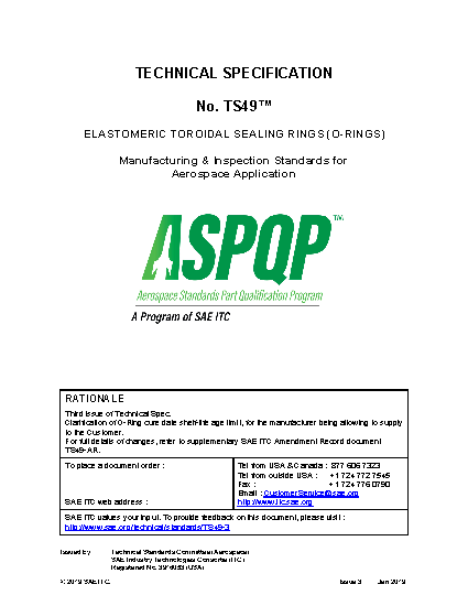 TS49 Elastomeric Toroidal Sealing Rings (O-Rings) Manufacture and Inspection Standards for Aerospace Applications