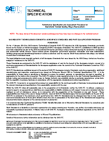 This technical specification document describes tests that certain parts may be required to meet. For example, this tech spec applies to AS12800, AS12801, AS43003, AS43013, and AS43014. To view suppliers qualified against this standard, visit https://ts200.sae-itc.org/.