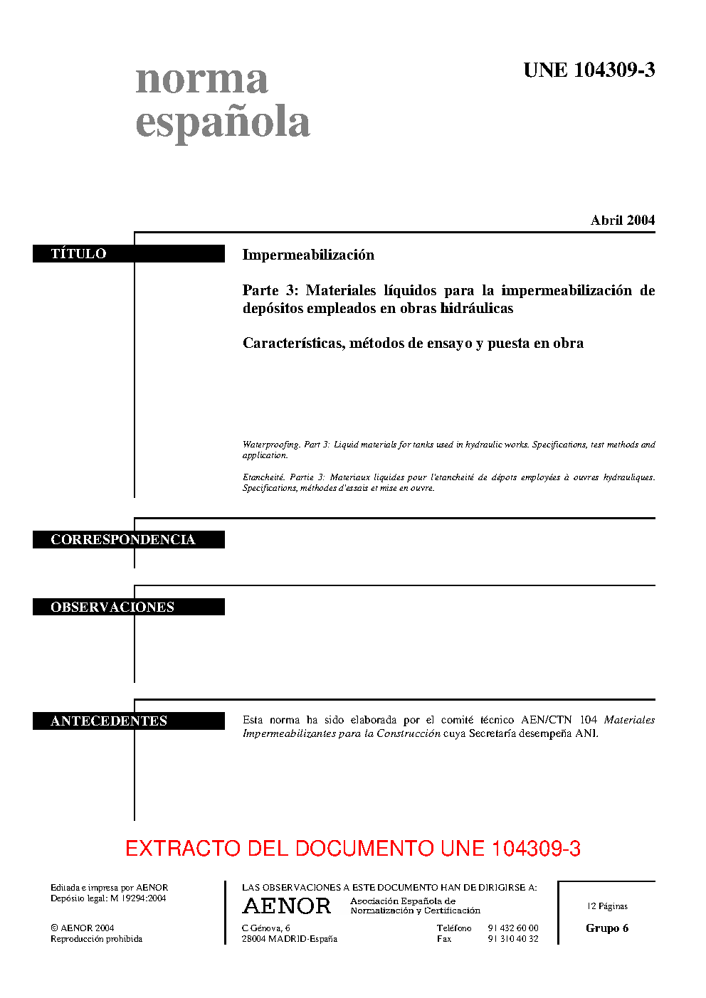 | Publisher | Asociacion Espanola de Normalizacion y Certificacion (AENOR) |