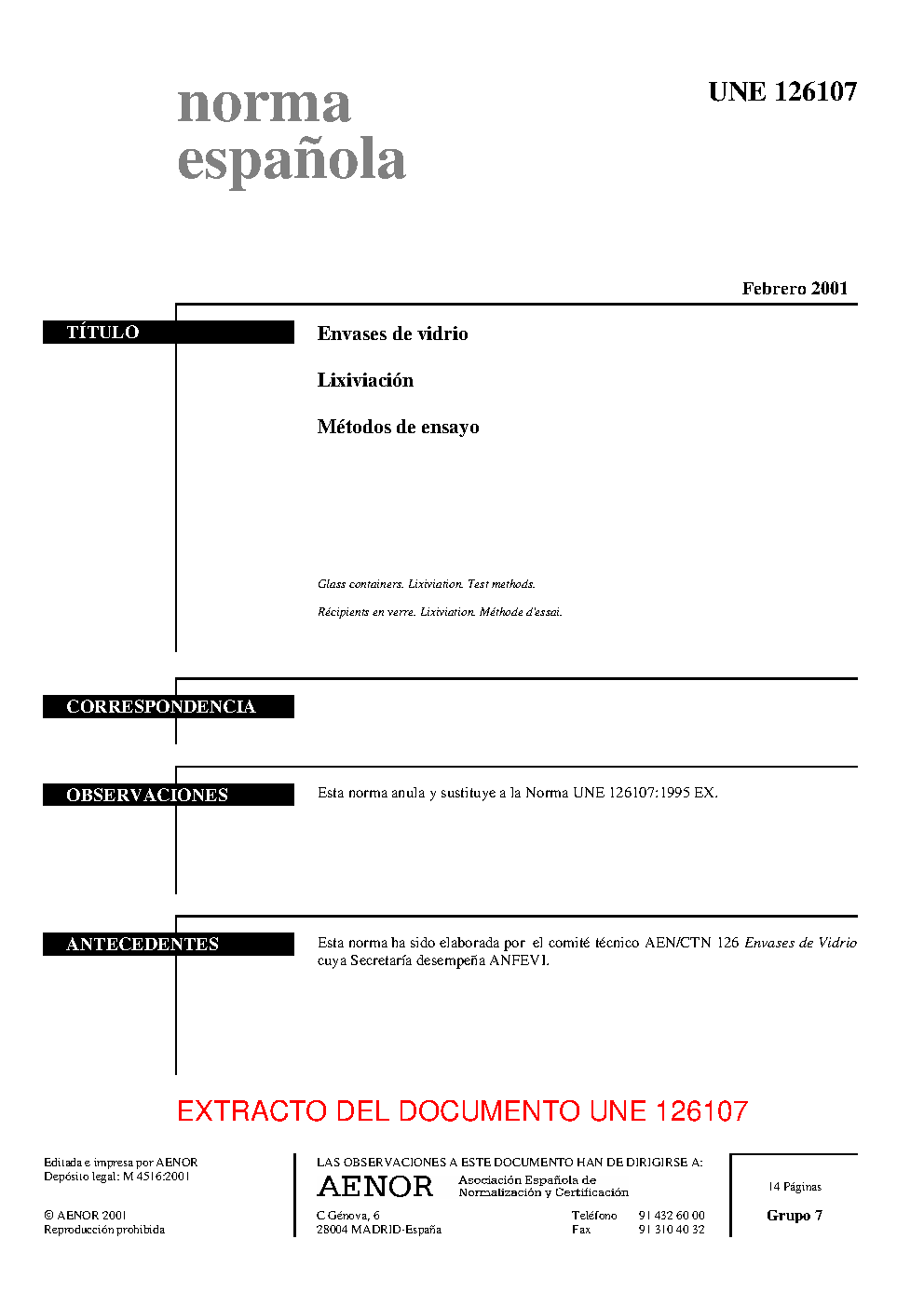 | Publisher | Asociacion Espanola de Normalizacion y Certificacion (AENOR) |