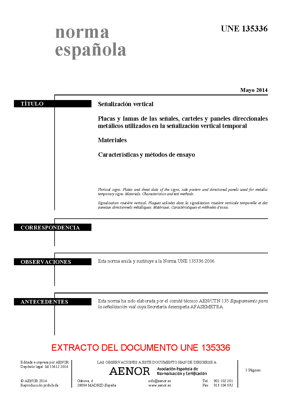 | Publisher | Asociacion Espanola de Normalizacion y Certificacion (AENOR) |