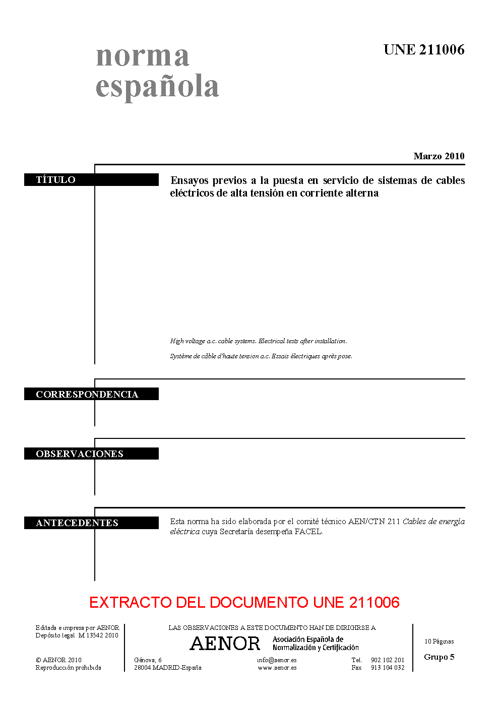 | Publisher | Asociacion Espanola de Normalizacion y Certificacion (AENOR) |