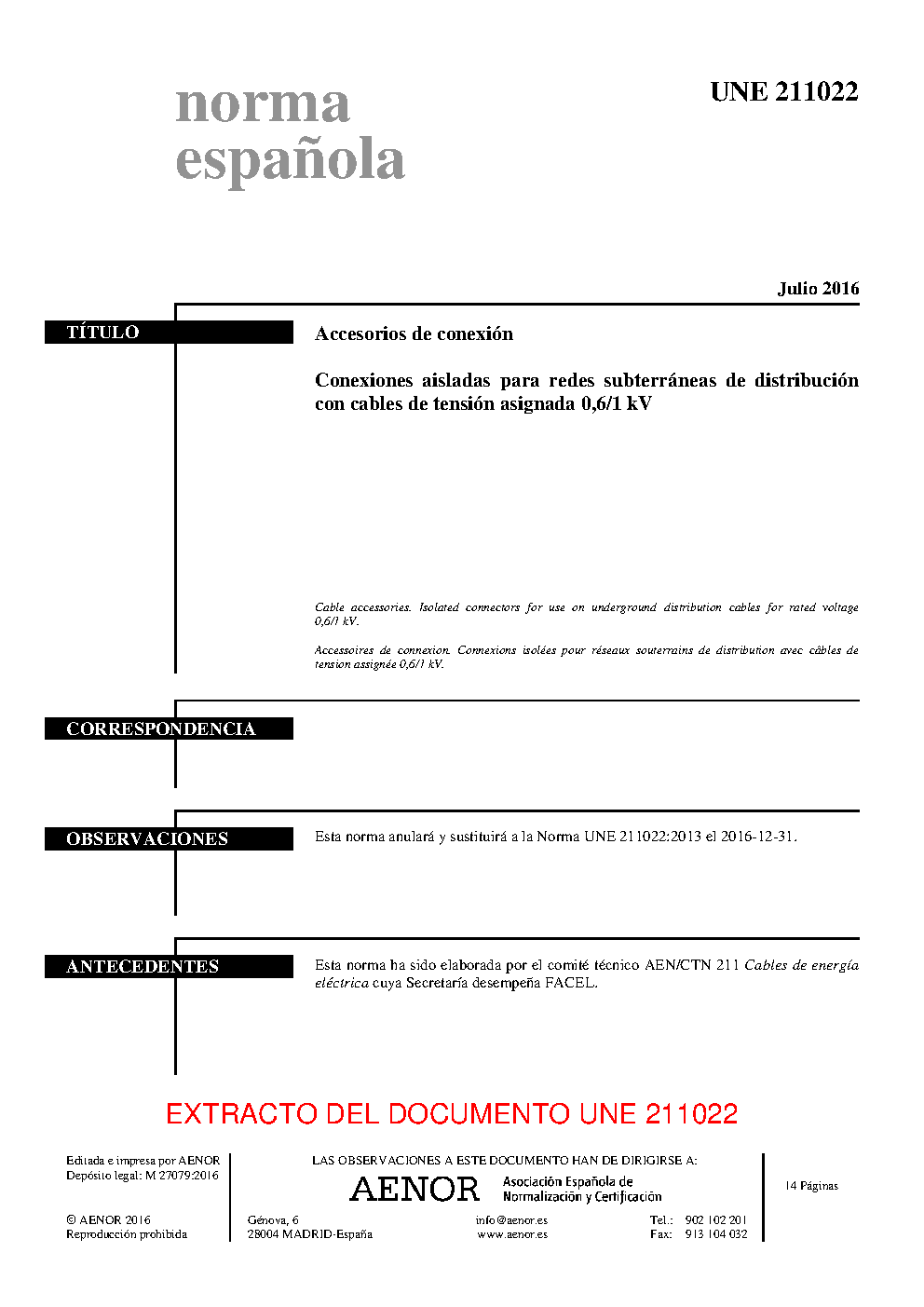 | Publisher | Asociacion Espanola de Normalizacion y Certificacion (AENOR) |