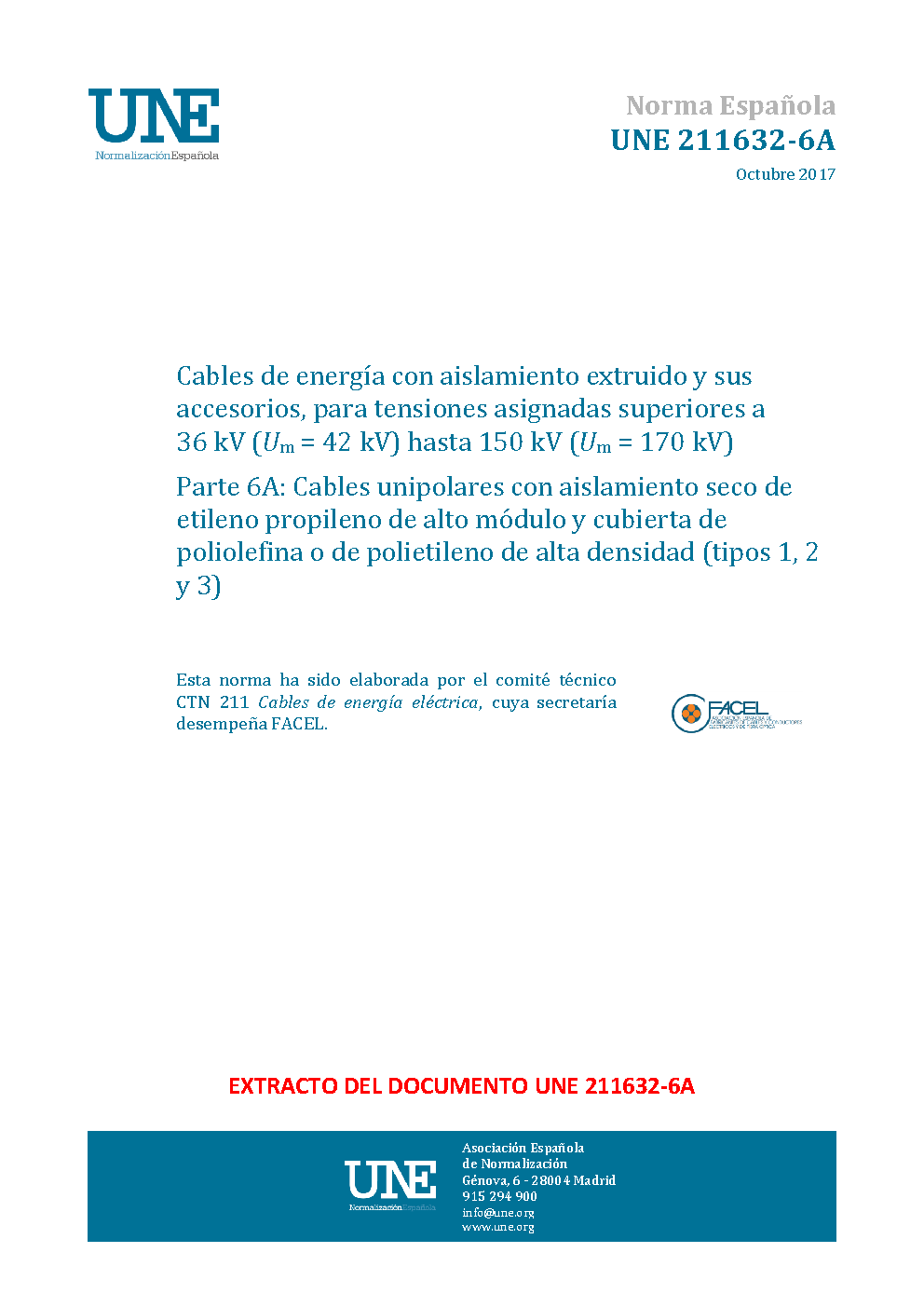 Power cables with extruded insulation and their accessories for rated voltages above 36 kV (Um = 42 kV) up to 150 kV (Um = 170 kV). Part 6A: Cables with HEPR insulation and polyolefin compound sheath (Types 1, 2 and 3) or high density polyethylene (HDPE) compound sheath.