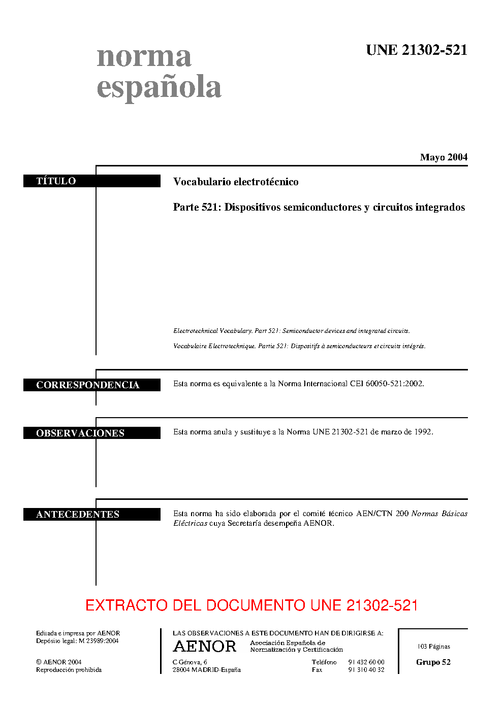 | Publisher | Asociacion Espanola de Normalizacion y Certificacion (AENOR) |