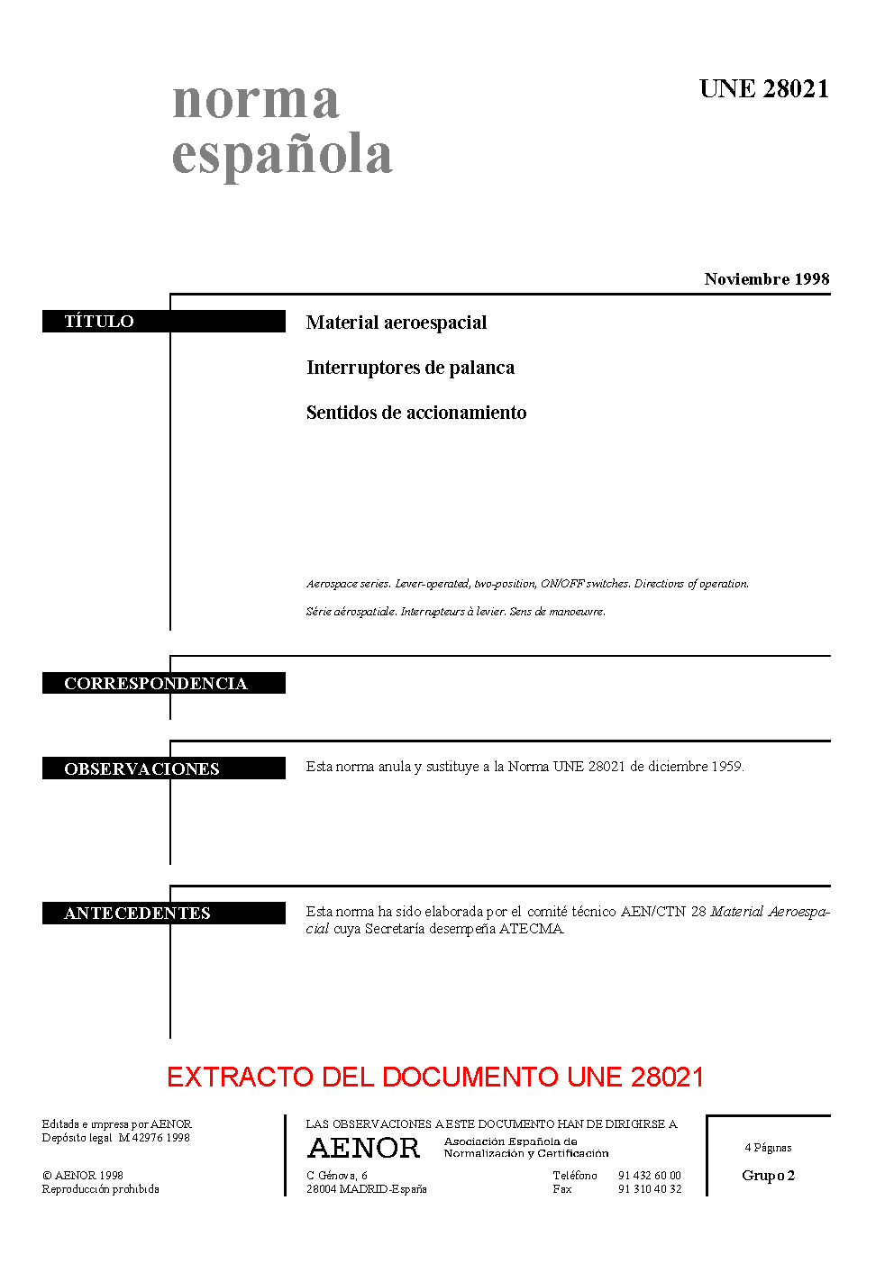 UNE 28021:1998