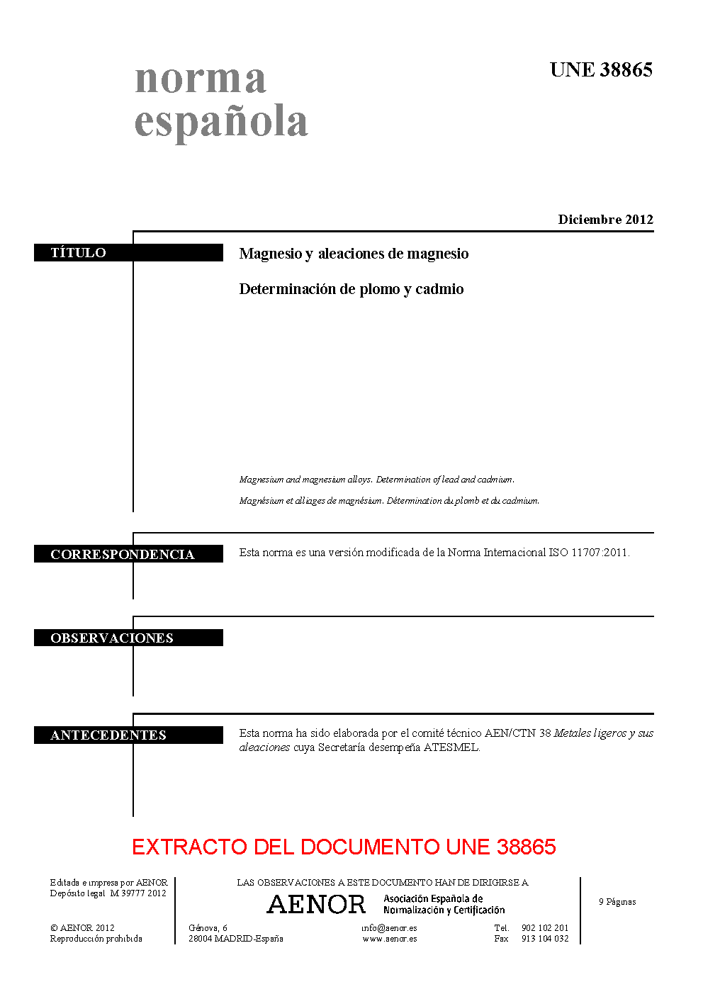 | Publisher | Asociacion Espanola de Normalizacion y Certificacion (AENOR) |