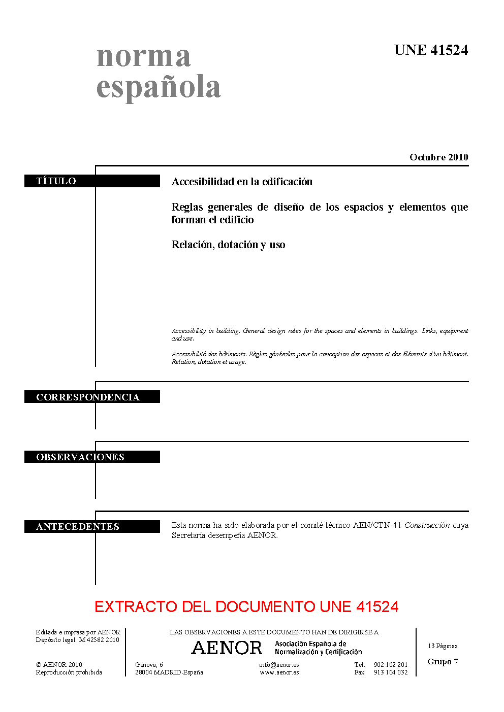 | Publisher | Asociacion Espanola de Normalizacion y Certificacion (AENOR) |