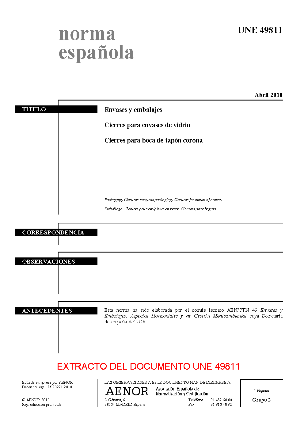 | Publisher | Asociacion Espanola de Normalizacion y Certificacion (AENOR) |