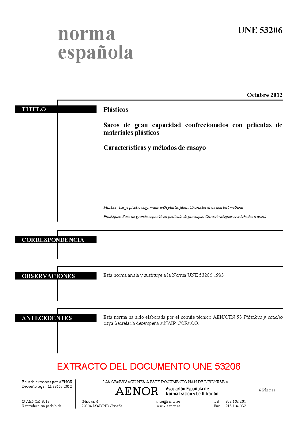 | Publisher | Asociacion Espanola de Normalizacion y Certificacion (AENOR) |