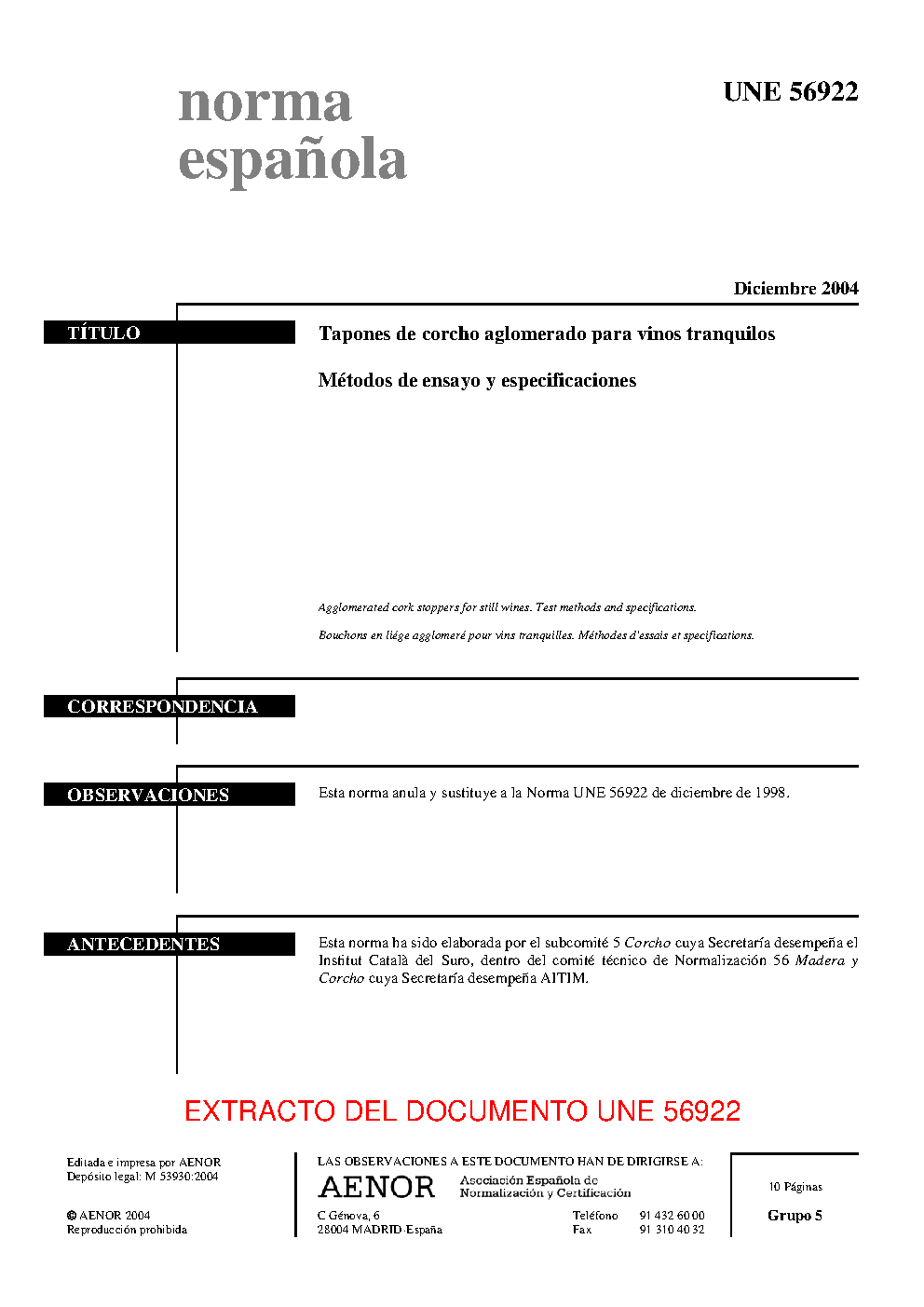 | Publisher | Asociacion Espanola de Normalizacion y Certificacion (AENOR) |