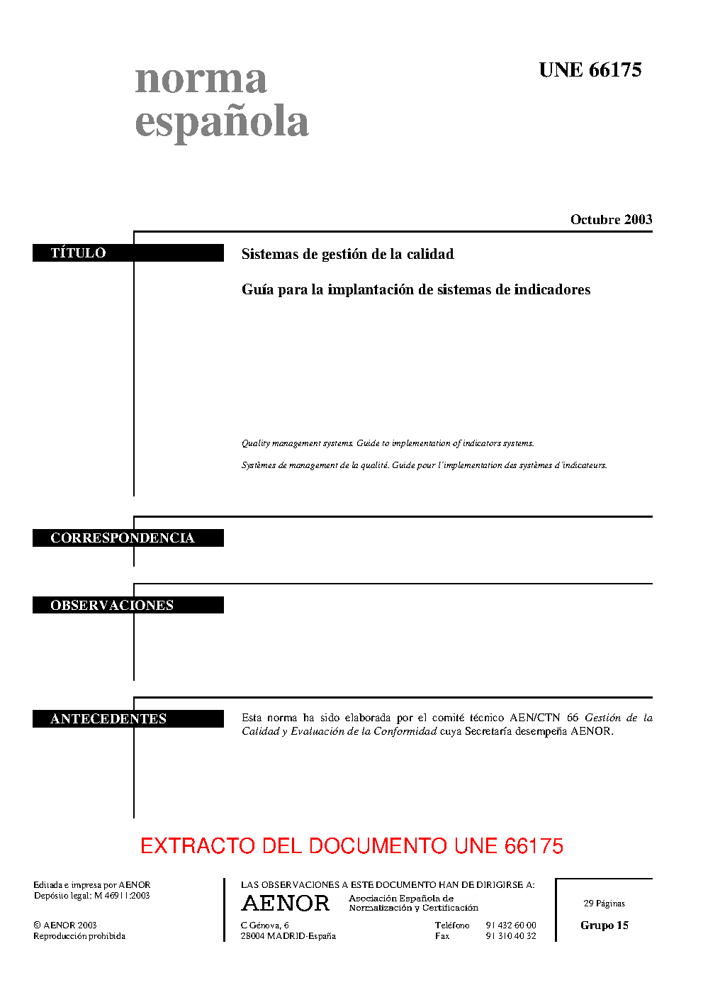 UNE 66175:2003 (R2010)
