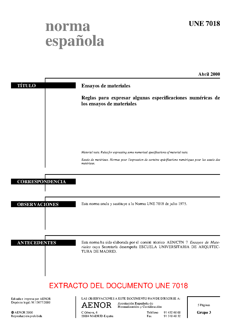 UNE 7018:2000 (R2010)