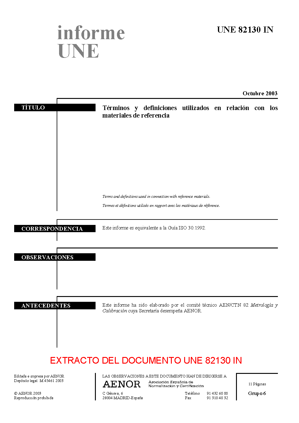 UNE 82130:2003 IN