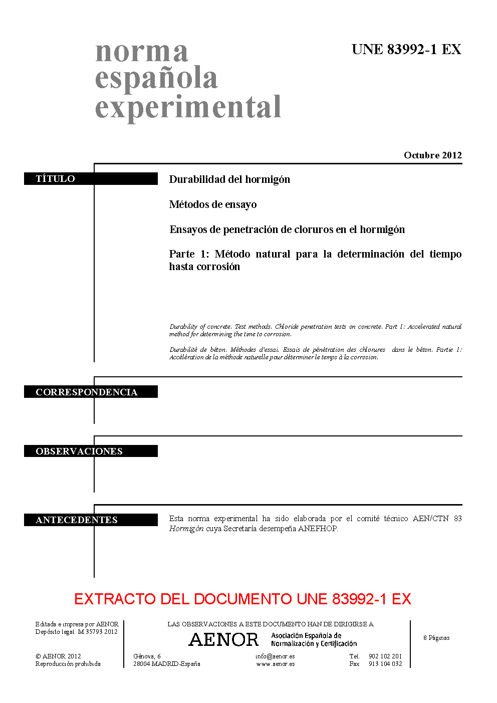 | Publisher | Asociacion Espanola de Normalizacion y Certificacion (AENOR) |