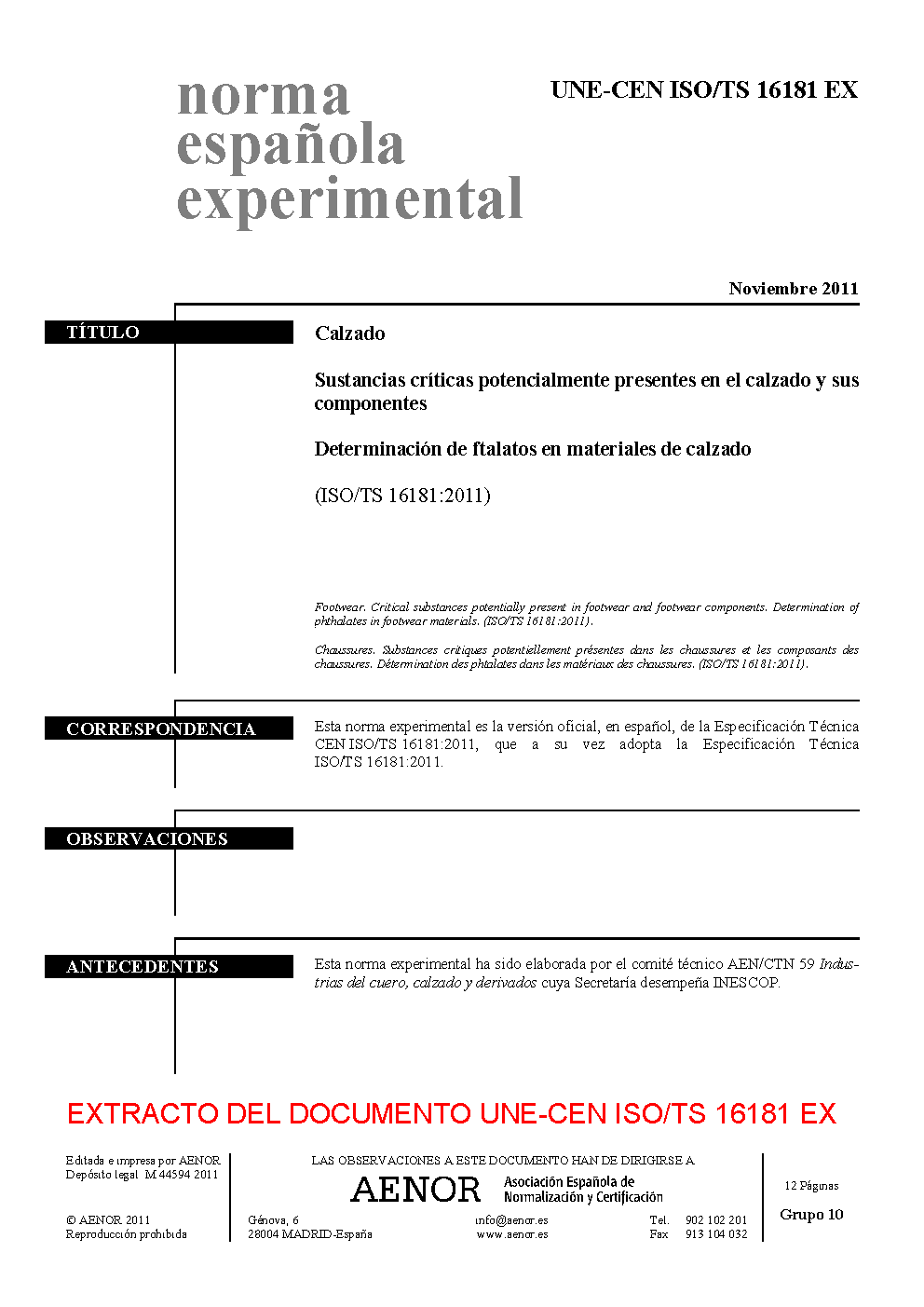 | Publisher | Asociacion Espanola de Normalizacion y Certificacion (AENOR) |