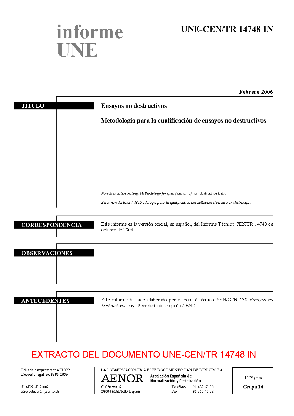 UNE-CEN/TR 14748:2006 IN