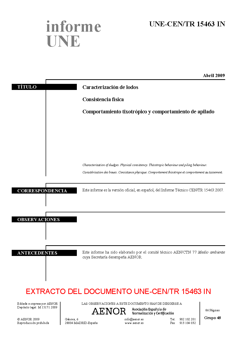 | Publisher | Asociacion Espanola de Normalizacion y Certificacion (AENOR) |