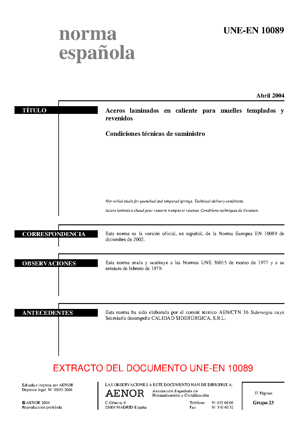 UNE-EN 10089:2004 (R2017)