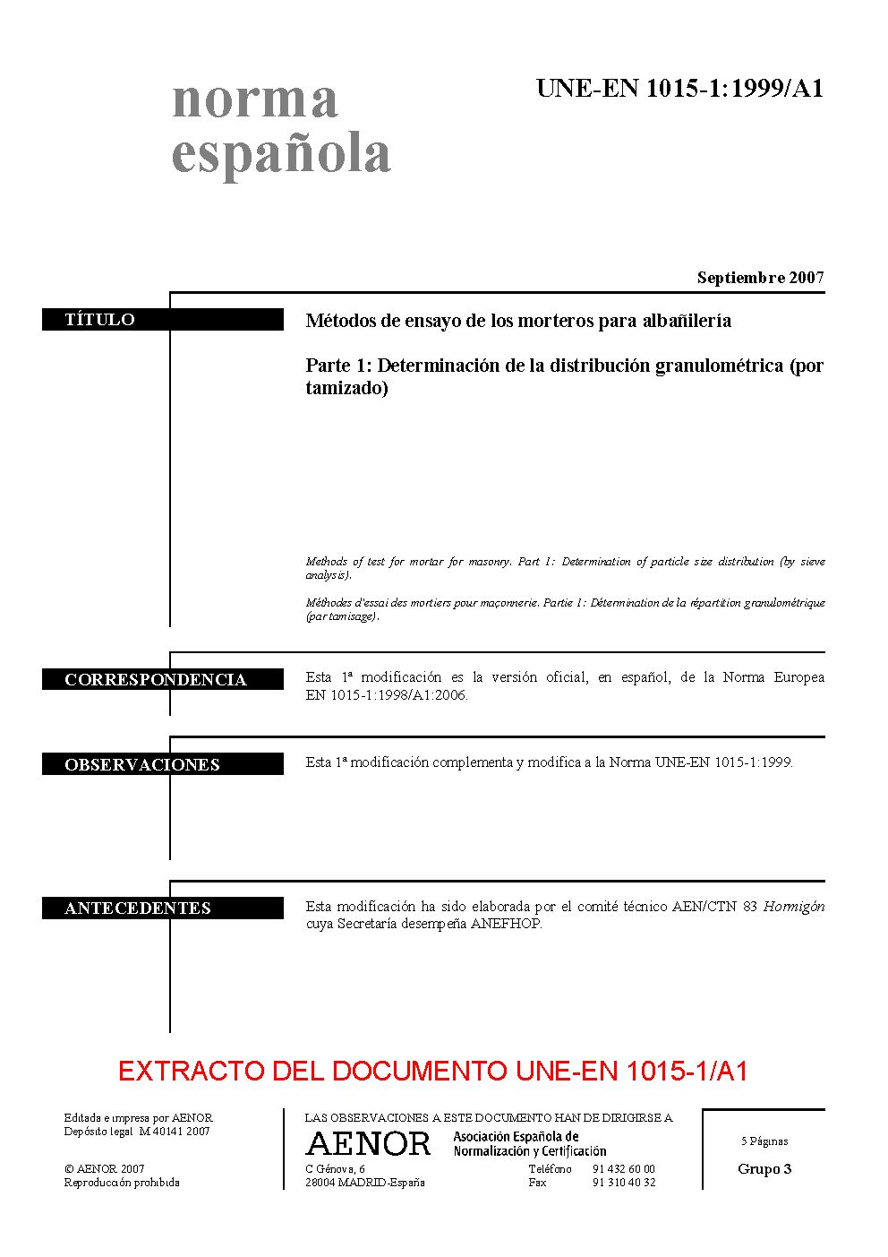 UNE-EN 1015-1:1999 (R2020)
