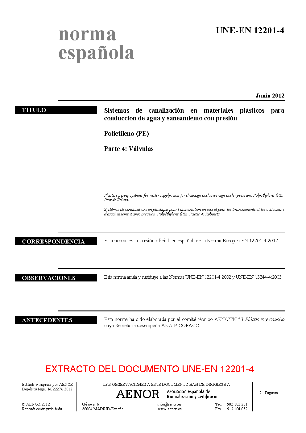 | Publisher | Asociacion Espanola de Normalizacion y Certificacion (AENOR) |