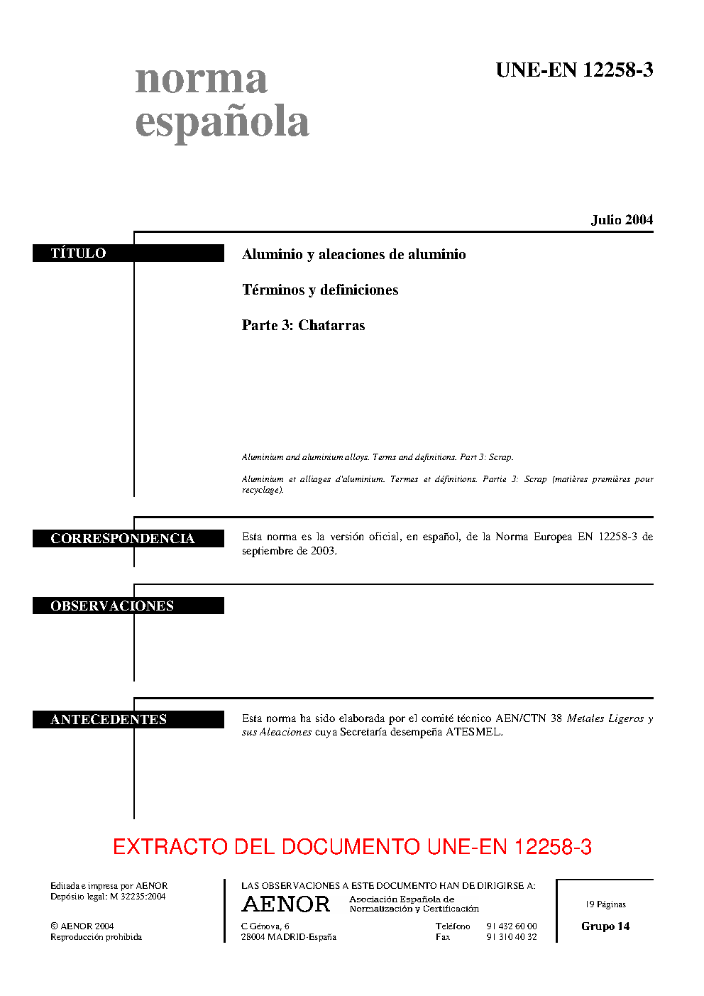 | Publisher | Asociacion Espanola de Normalizacion y Certificacion (AENOR) |