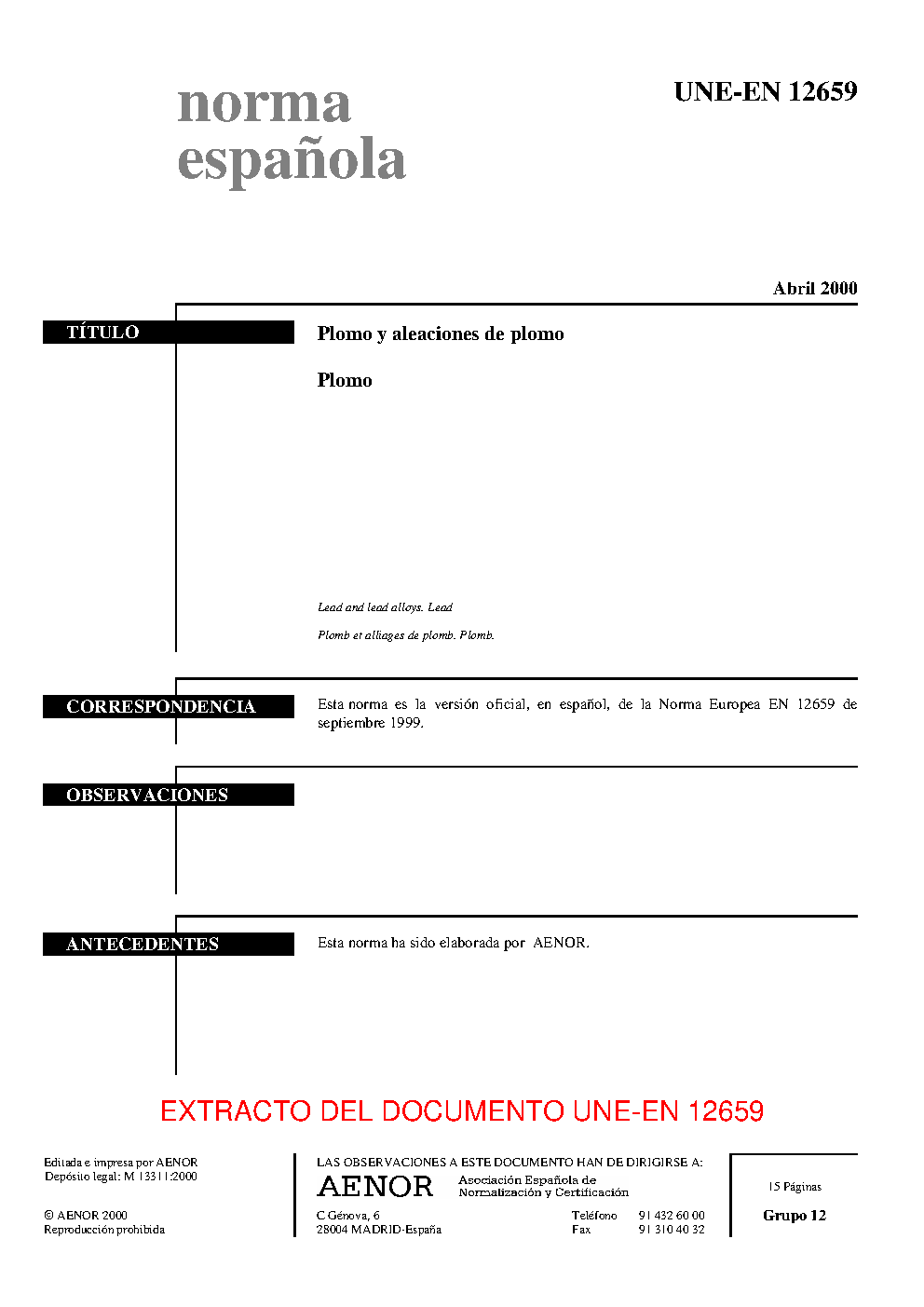 | Publisher | Asociacion Espanola de Normalizacion y Certificacion (AENOR) |
