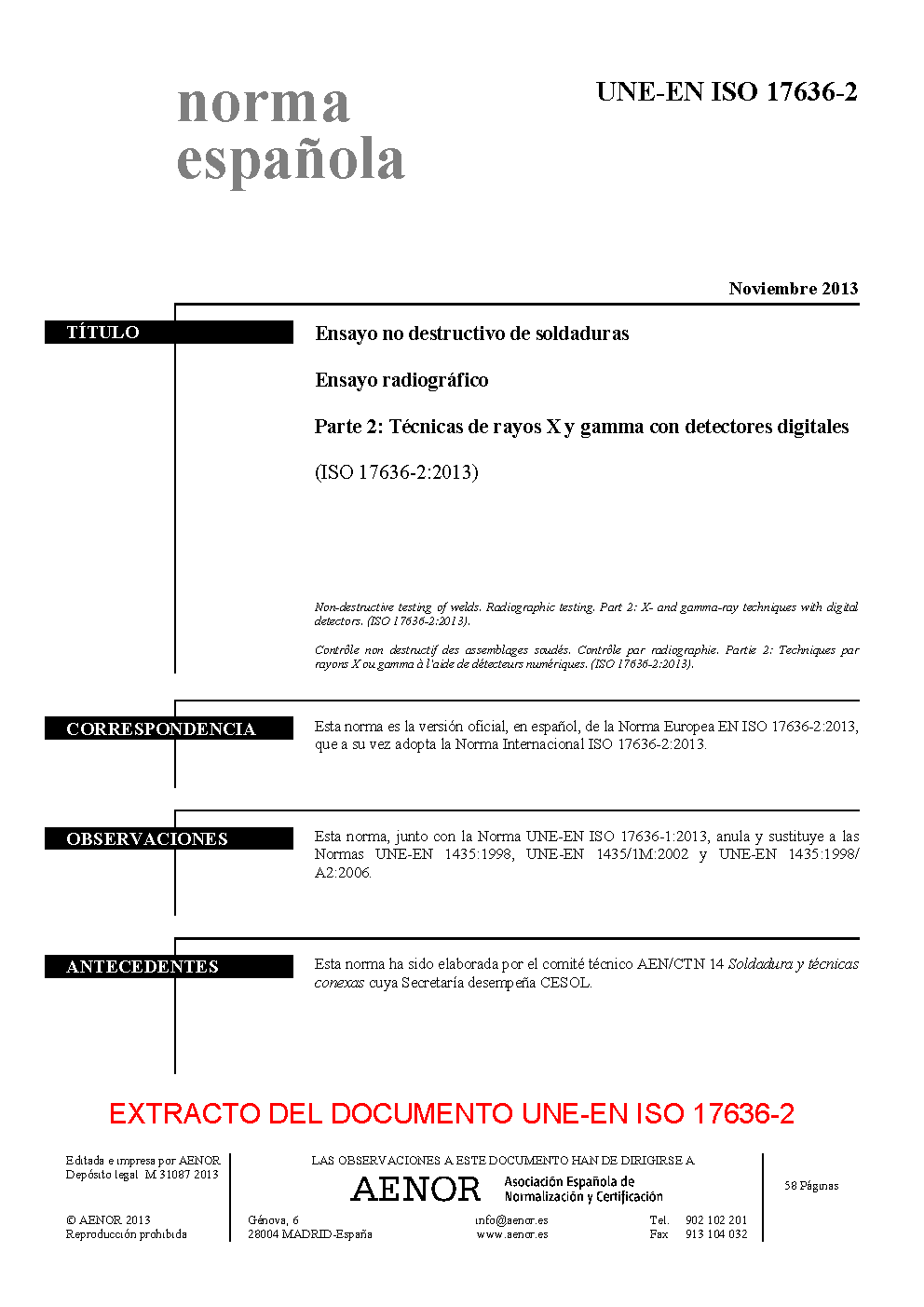 | Publisher | Asociacion Espanola de Normalizacion y Certificacion (AENOR) |