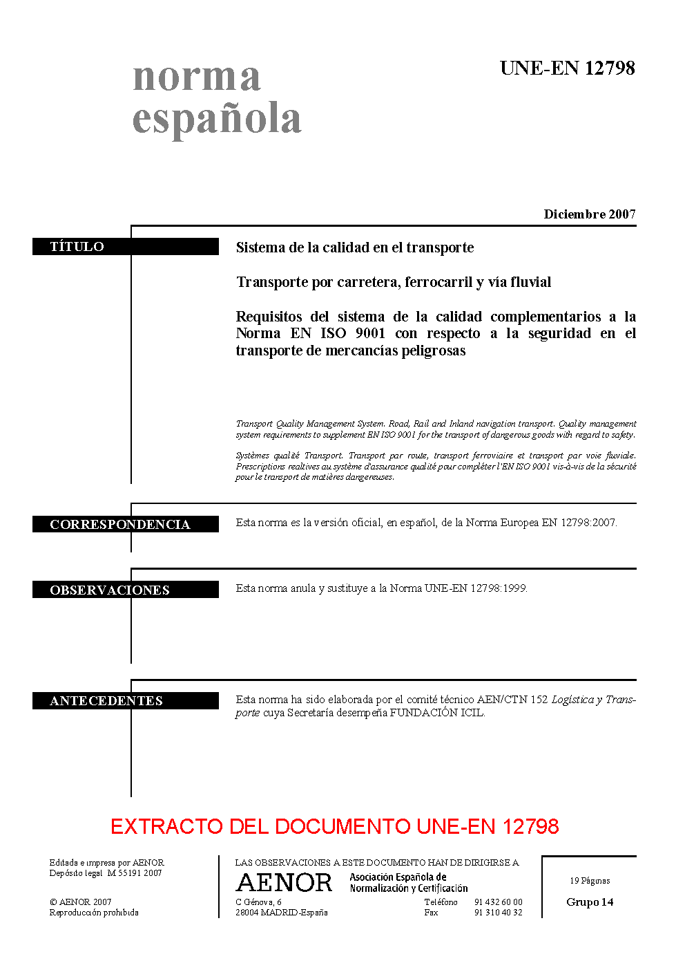 | Publisher | Asociacion Espanola de Normalizacion y Certificacion (AENOR) |