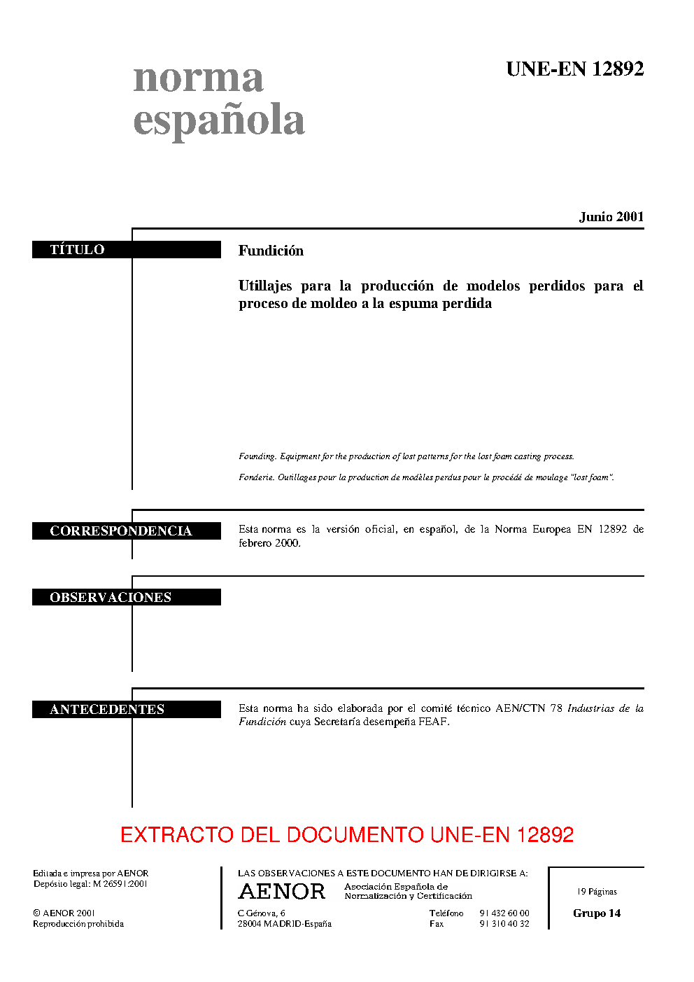 | Publisher | Asociacion Espanola de Normalizacion y Certificacion (AENOR) |