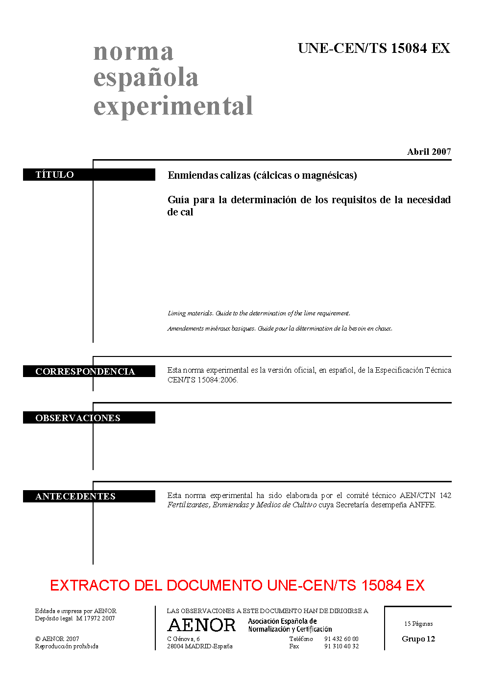 | Publisher | Asociacion Espanola de Normalizacion y Certificacion (AENOR) |