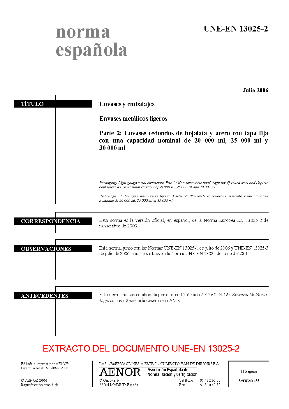 | Publisher | Asociacion Espanola de Normalizacion y Certificacion (AENOR) |