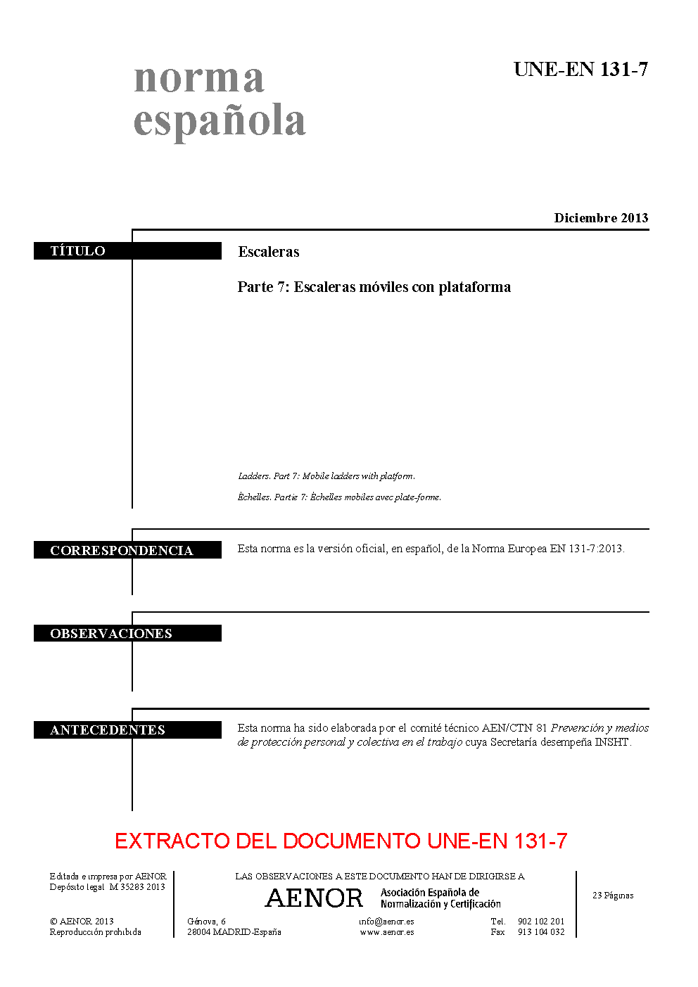 | Publisher | Asociacion Espanola de Normalizacion y Certificacion (AENOR) |