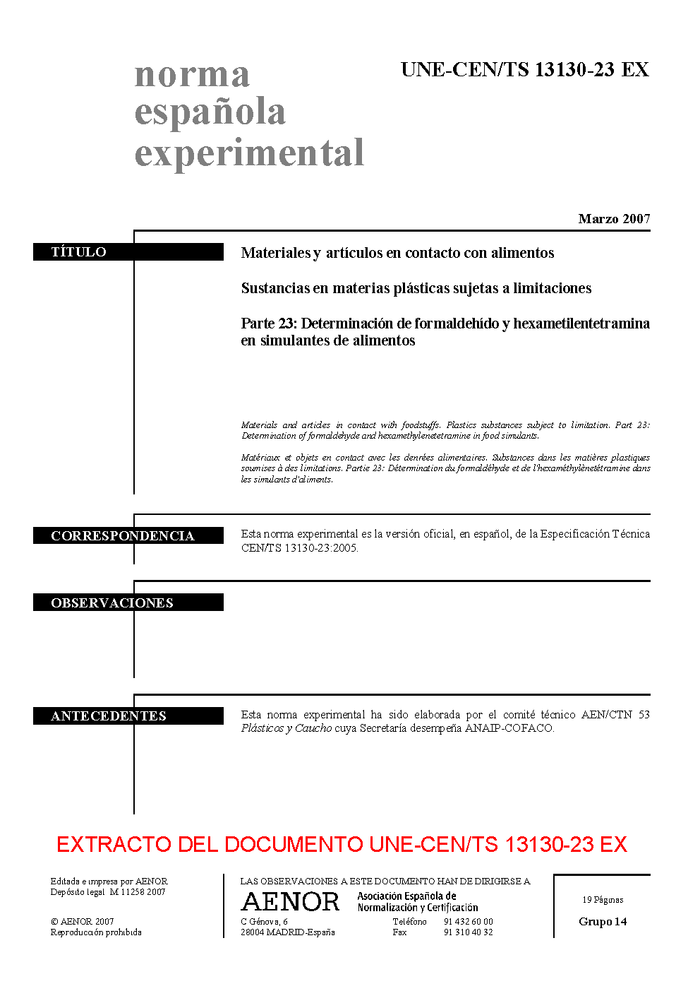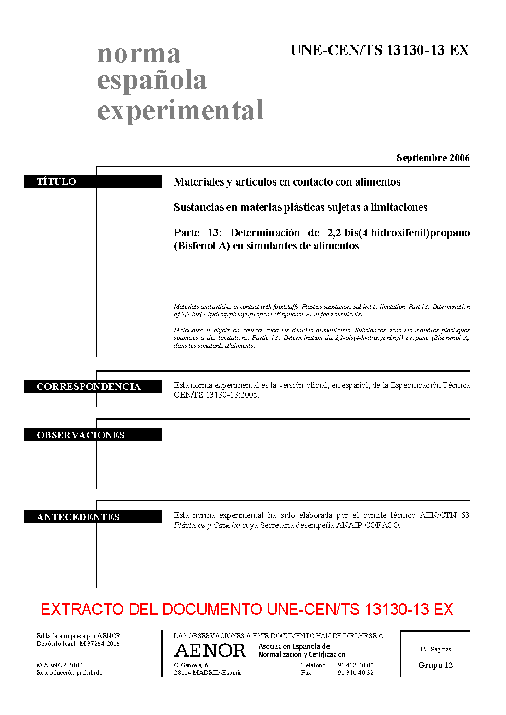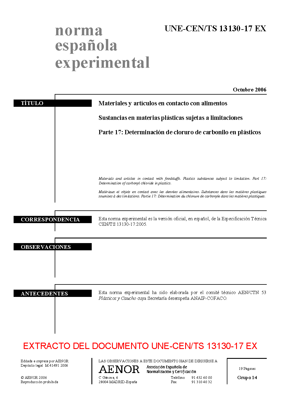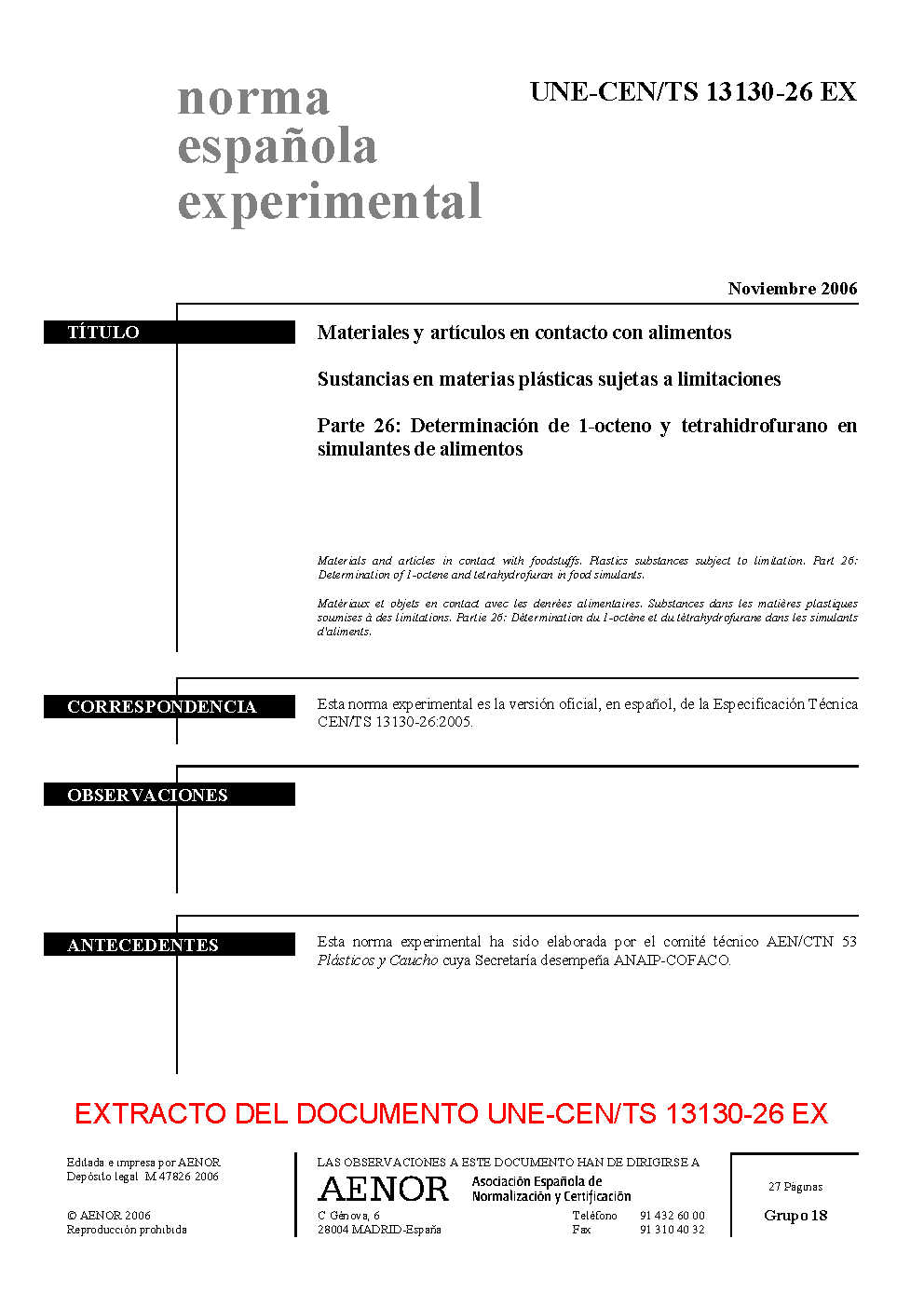 | Publisher | Asociacion Espanola de Normalizacion y Certificacion (AENOR) |