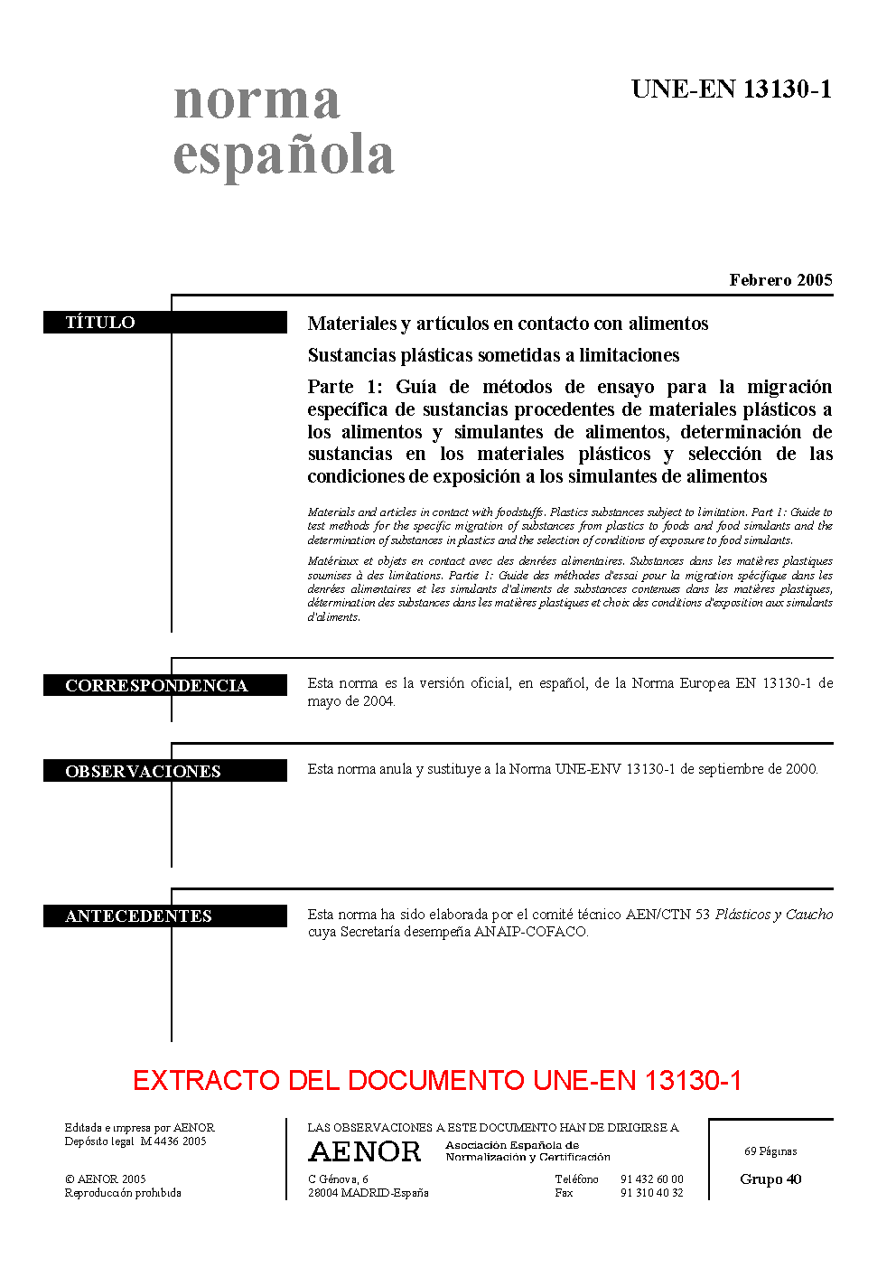 UNE-EN 13130-1:2005