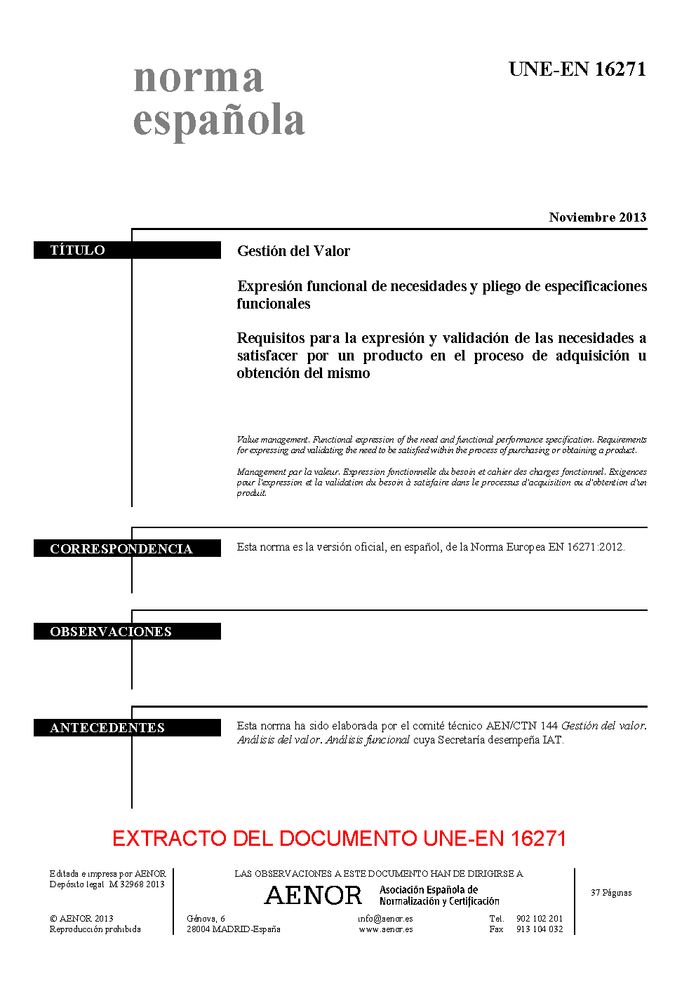| Publisher | Asociacion Espanola de Normalizacion y Certificacion (AENOR) |
