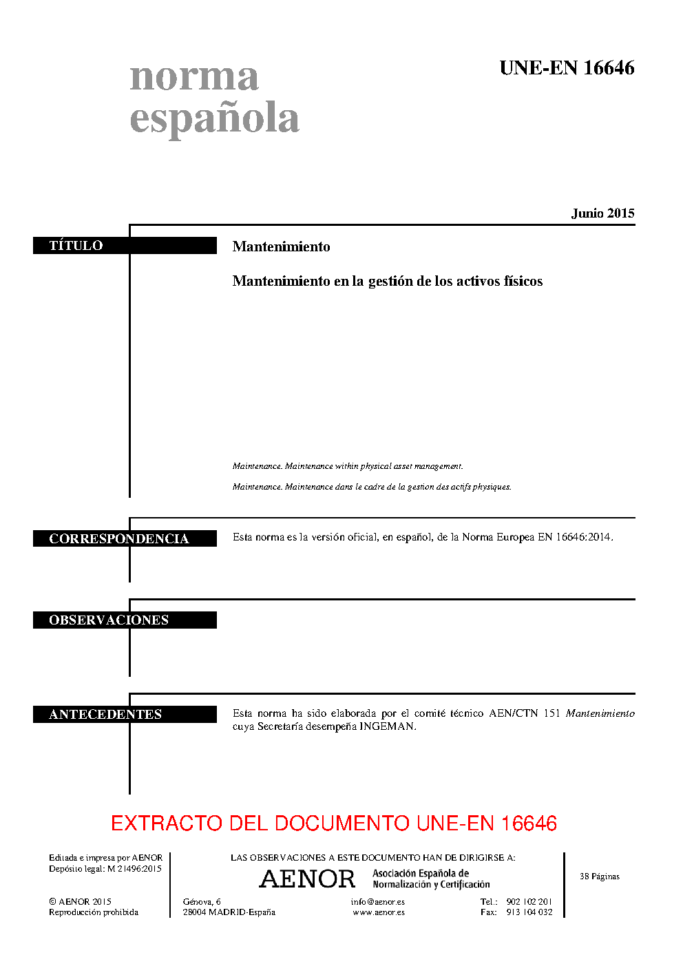 | Publisher | Asociacion Espanola de Normalizacion y Certificacion (AENOR) |