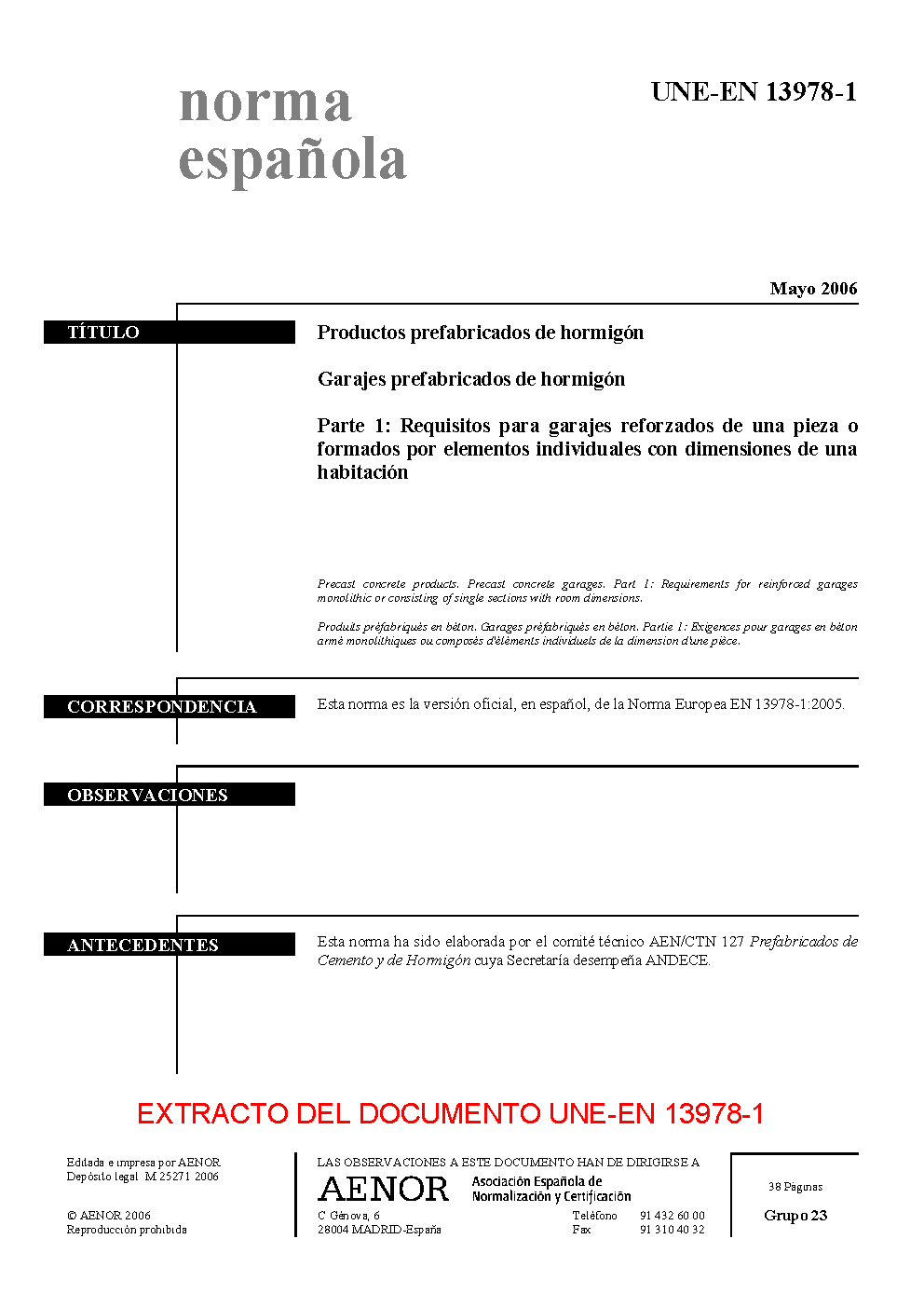 | Publisher | Asociacion Espanola de Normalizacion y Certificacion (AENOR) |