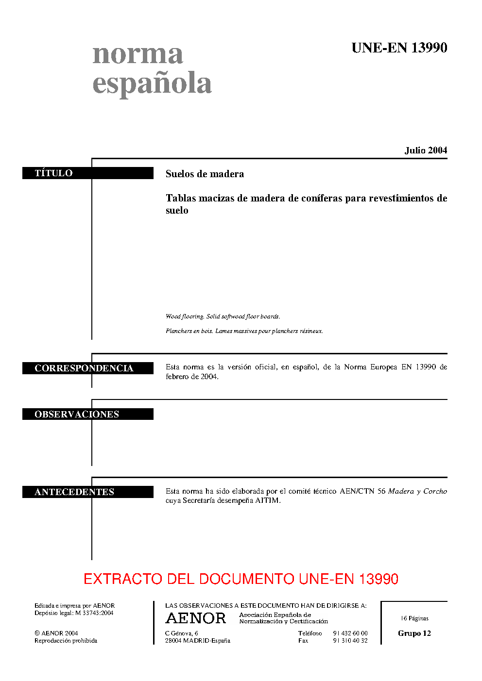 | Publisher | Asociacion Espanola de Normalizacion y Certificacion (AENOR) |