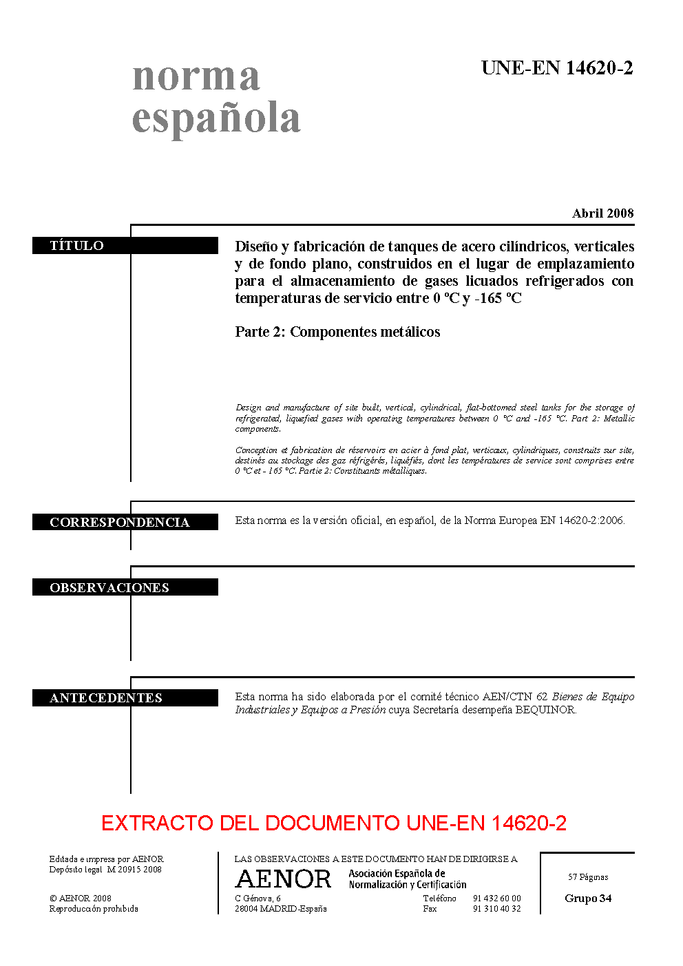 | Publisher | Asociacion Espanola de Normalizacion y Certificacion (AENOR) |